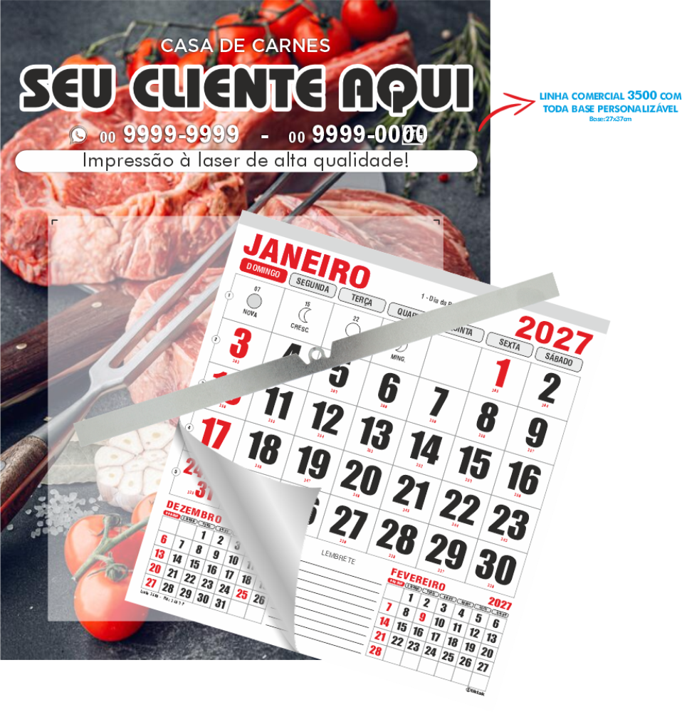 Folhinha de parede com vareta metálica - Comercial de Base Personalizável com Bloco Padrão ou Opcional