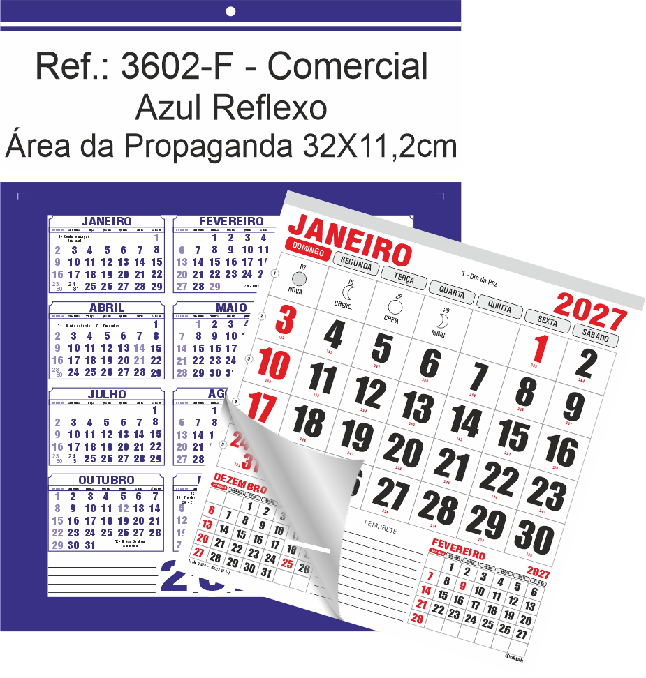 Calendário Comercial de Parede com Furo Ref.: 3602-F