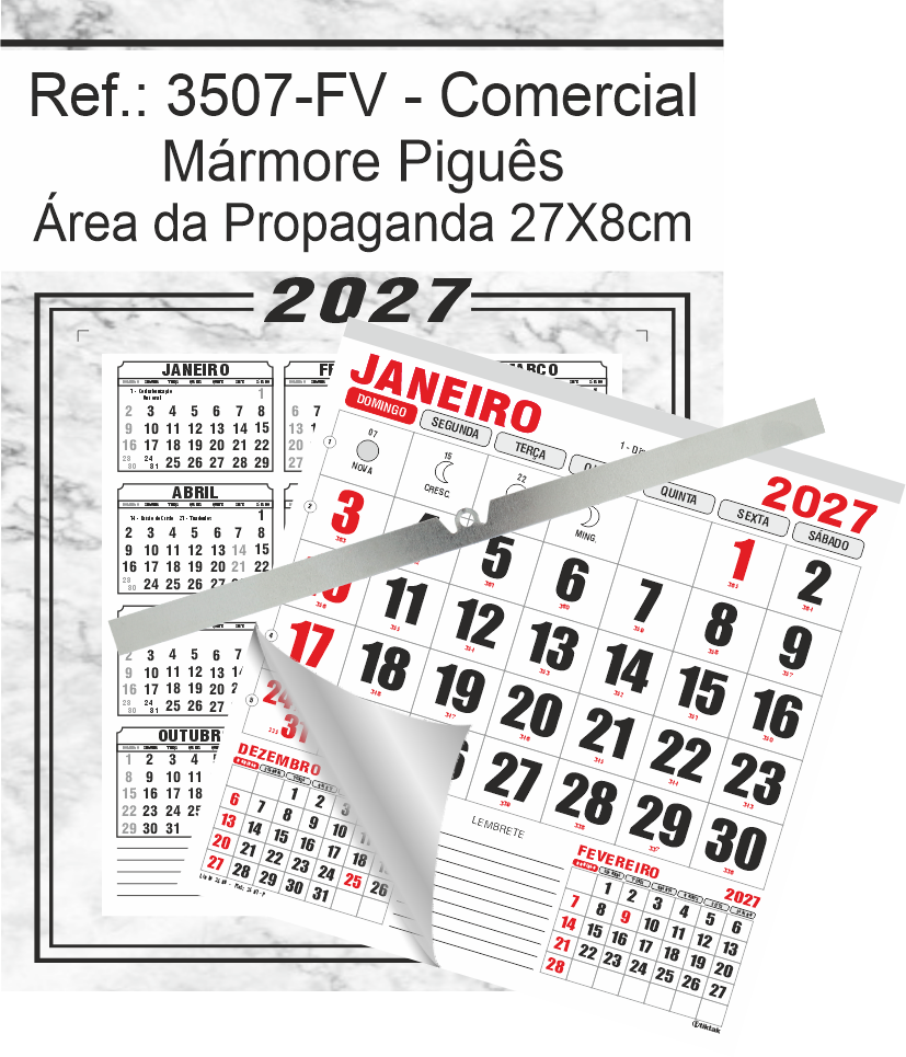 Calendário Comercial de Parede com ou sem Vareta Ref.: 3507-FV