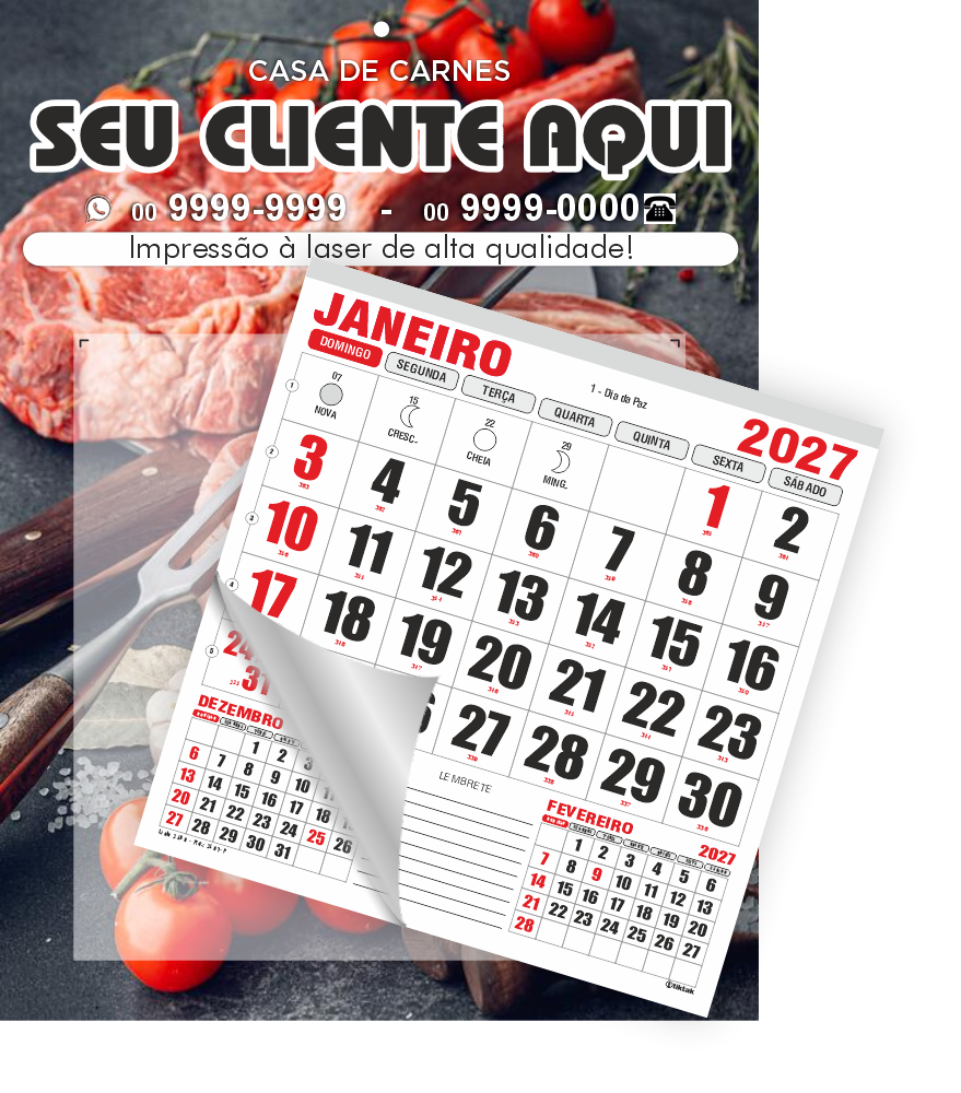 Calendário Comercial de Parede de Base Personalizável com Furo Ref.: 3400-P