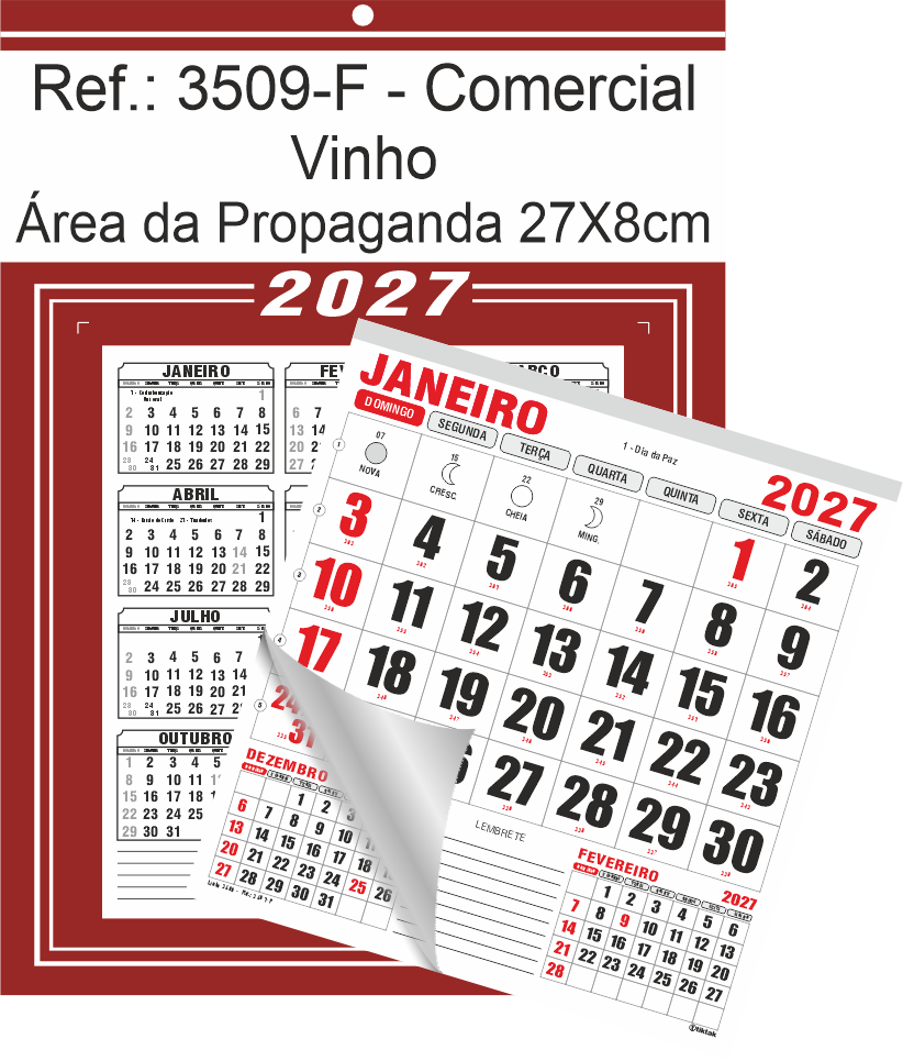 Calendário Comercial de Parede com Furo Ref.: 3509-F