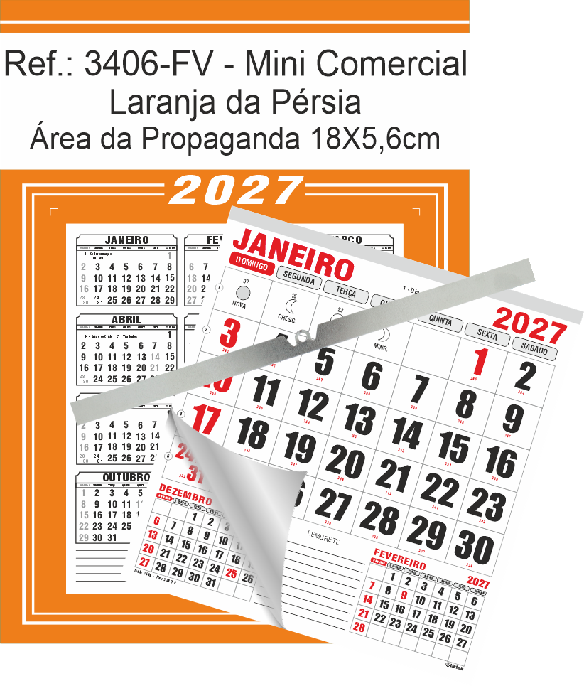 Calendário Mini Comercial de Parede com ou sem Vareta Ref.: 3406-FV