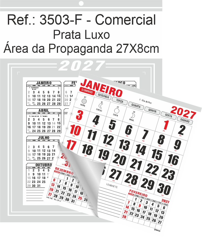 Calendário Comercial de Parede com Furo Ref.: 3503-F