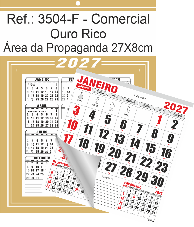Calendário Comercial de Parede com Furo Ref.: 3504-F